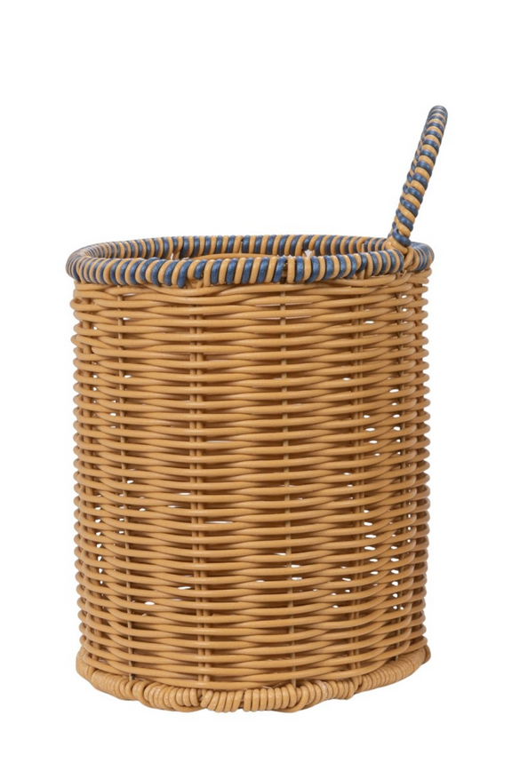 Create an accountWoven Plastic Basket with Blue Striped Woven Edge. 1 Handle.