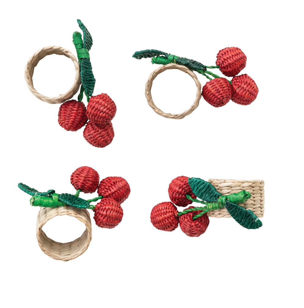 Create an accountWoven Seagrass Cherry Napkin Rings, Set of 4